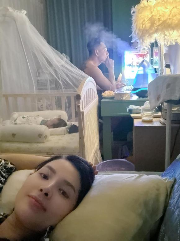 Bên cạnh đó, Phương Trinh Jolie cũng chia sẻ thêm loạt ảnh lúc mới sinh con của mình. Dù còn hơi bơ phờ nhưng nhan sắc của nữ ca sĩ vẫn không hề suy xuyễn là bao. Cô hài hước bảo: