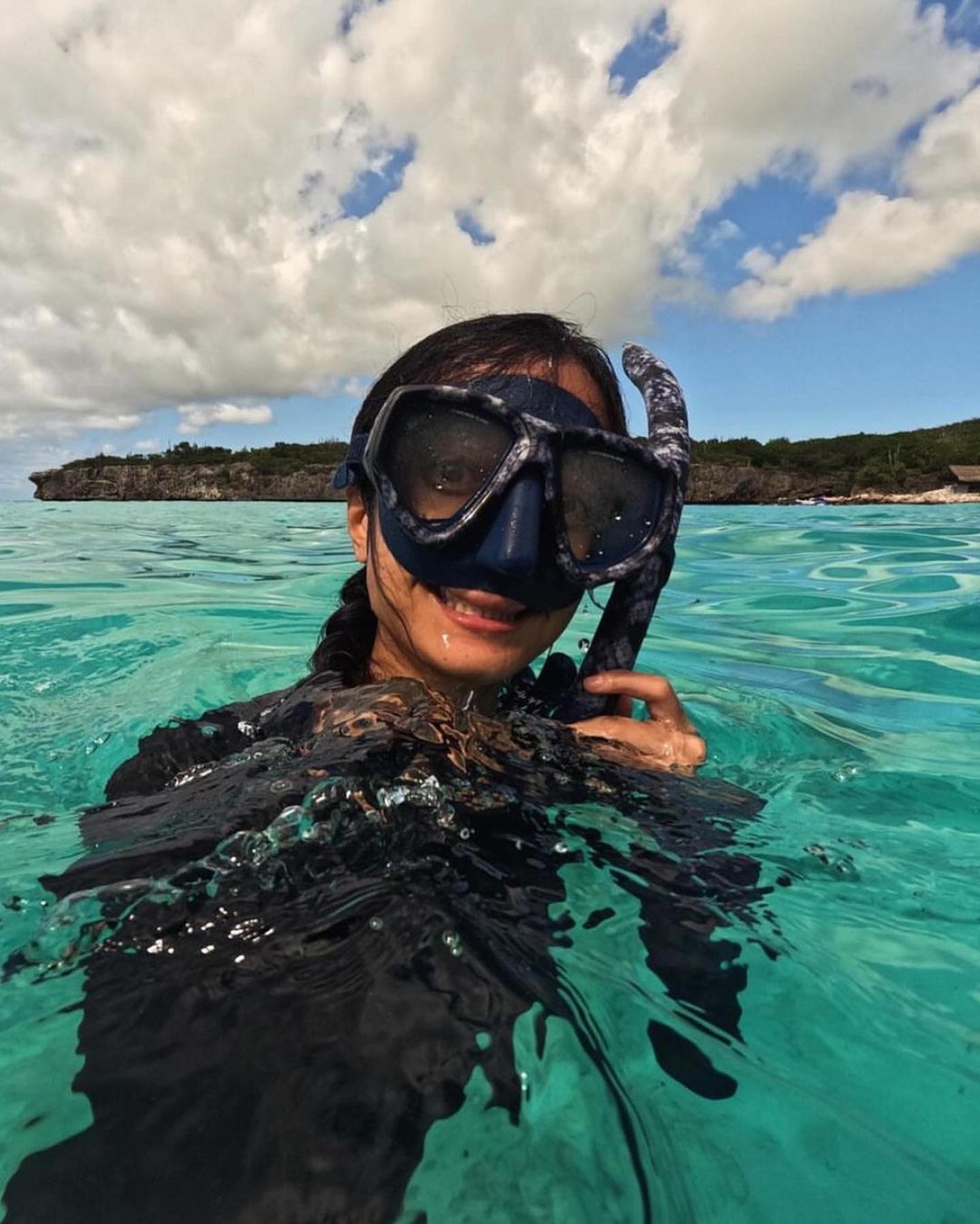 Syasya Syahirah Nor Azmi đang dành những ngày dài bất tận để chèo thuyền, câu cá và ngâm mình trong làn nước trong vắt của vùng biển Caribe.