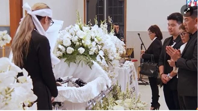 Cựu hoa hậu Bình Phương, vợ Đức Tiến và con gái 4 tuổi túc trực bên linh cữu của nam diễn viên. Mẹ ruột cùng người thân của Đức Tiến ở Việt Nam không kịp sang Mỹ để nhìn mặt con trai lần cuối.
