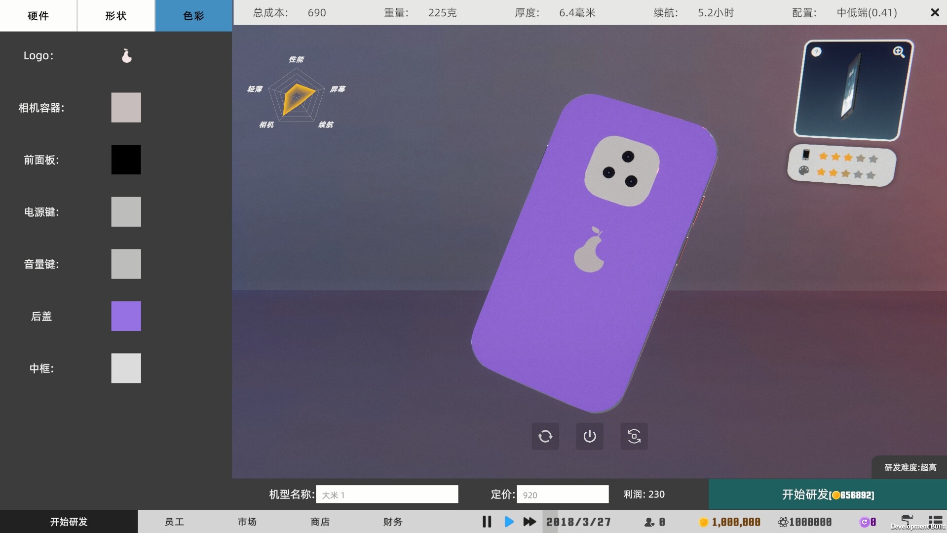 Tuy nhiên, hãy nhớ rằng việc chi tiêu quá tay có thể khiến công ty rơi vào cảnh nợ nần. Do đó, mỗi bước đi đều cần được tính toán cẩn thận. Mad Smartphone Tycoon cung cấp cho người chơi hệ thống dữ liệu mô phỏng ngành và thông tin thị trường chi tiết, giúp bạn nắm bắt xu hướng, điều chỉnh chiến lược kịp thời và dẫn dắt công ty vượt lên trong cuộc đua khốc liệt.