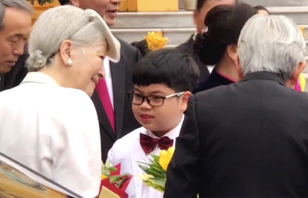 Người được chọn làm đại diện tặng hoa các nguyên thủ quốc gia không thể là một trẻ em nào đó, nhưng phải là con ông cháu cha. Và đây là thần đồng kiêm tỷ phú trẻ nhất Việt Nam Nguyễn Như Khôi trong lần đón tiếp nhà vua và hoàng hậu Nhật.