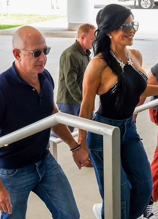 Sáng 7/12, tỷ phú Jeff Bezos cùng Lauren Sanchez và con trai cô, Nikko, 22 tuổi, gây chú ý khi có mặt ở bãi biển Miami. Trong lần xuất hiện này, cựu nhà báo 53 tuổi mặc áo màu đen, bó sát, với phần dây vòng qua cổ được trang trí bằng những ngôi sao bạc và sequin. Thiết kế khoét hai bên của chiếc áo khiến phần ngực của Sanchez không thể được che chắn hết. Bộ ngực ngoại cỡ của cô như muốn tràn sang hai bên. Cô kết hợp áo với quần jean túi hộp, giày thể thao trắng, đeo kính râm to bản.