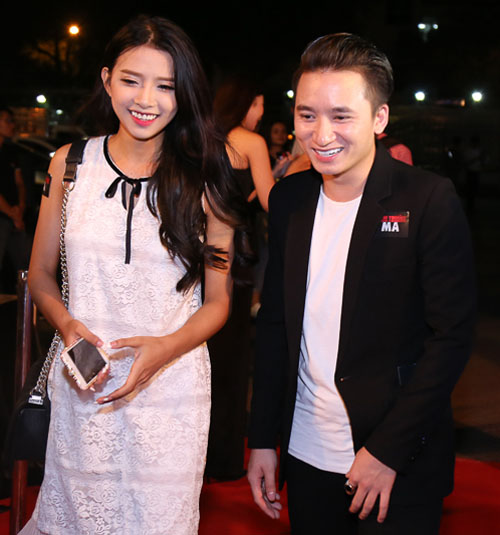 Tuy nhiên, khi sánh bước cùng nhau trên thảm đỏ, Phan Mạnh Quỳnh tỏ ra rụt rè. Anh hạn chế những cử chỉ thân mật cùng bạn gái vì ngại công khai chuyện tình cảm trước báo giới.