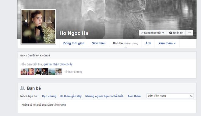 Đàm Vĩnh Hưng và Hồ Ngọc Hà đã không còn làm bạn bè trên facebook nữa.