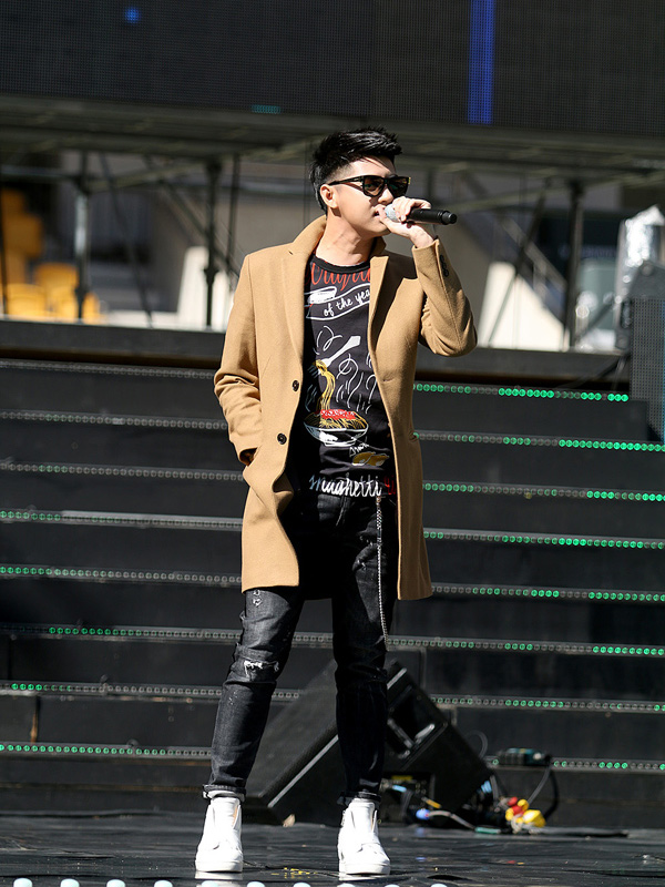 Nam ca sĩ chọn đeo mắt kính do Ray-ban kết hợp Blindreason sản xuất. Anh còn gây chú ý với chiếc đồng hồ hiệu Bell&Ross giá trên 5.000 USD (hơn 110 triệu đồng) và chiếc ba lô có giá hơn 70 triệu đồng.