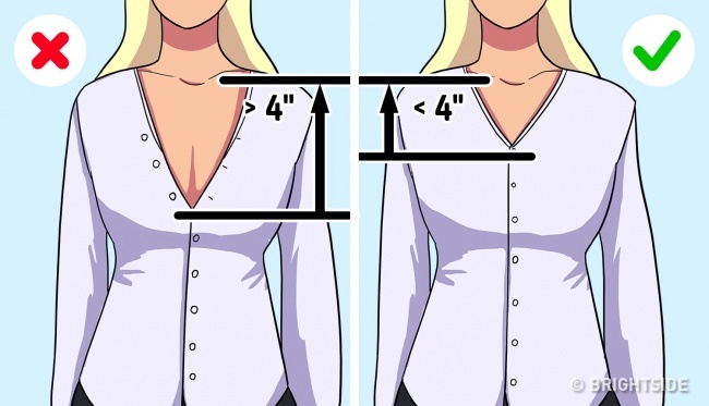 Cổ áo chữ V không nên xẻ sâu hơn 10 cm (4 inch) tính từ vùng xương đòn.