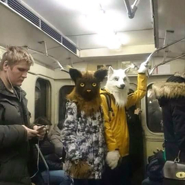 Wow, "chó mèo" ở đâu mà lại đi tàu điện ngầm vậy ta?