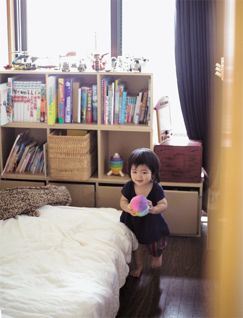 Phòng khách nhà Kaori chỉ bày một bàn ăn, mấy chiếc ghế và một cái bàn thấp. Đôi khi cô sử dụng bàn ăn để làm việc. Cô cố gắng không tăng thêm số lượng đồ dùng trong nhà. Toàn bộ bát đĩa có hoa văn đơn giản và đủ bền để trẻ con cũng có thể dùng. Số lượng đồ chơi, sách tranh cho các con chỉ giới hạn vừa đủ trong phạm vi của một chiếc giá để đồ.