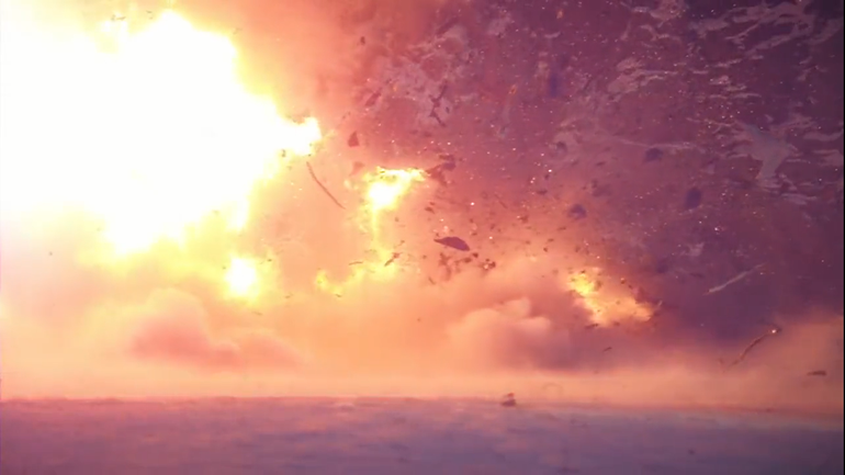 Lực phát nổ mạnh đã phá hủy chiếc Tesla Model S thành nhiều mảnh vụn bắn ra (Ảnh chụp từ video).