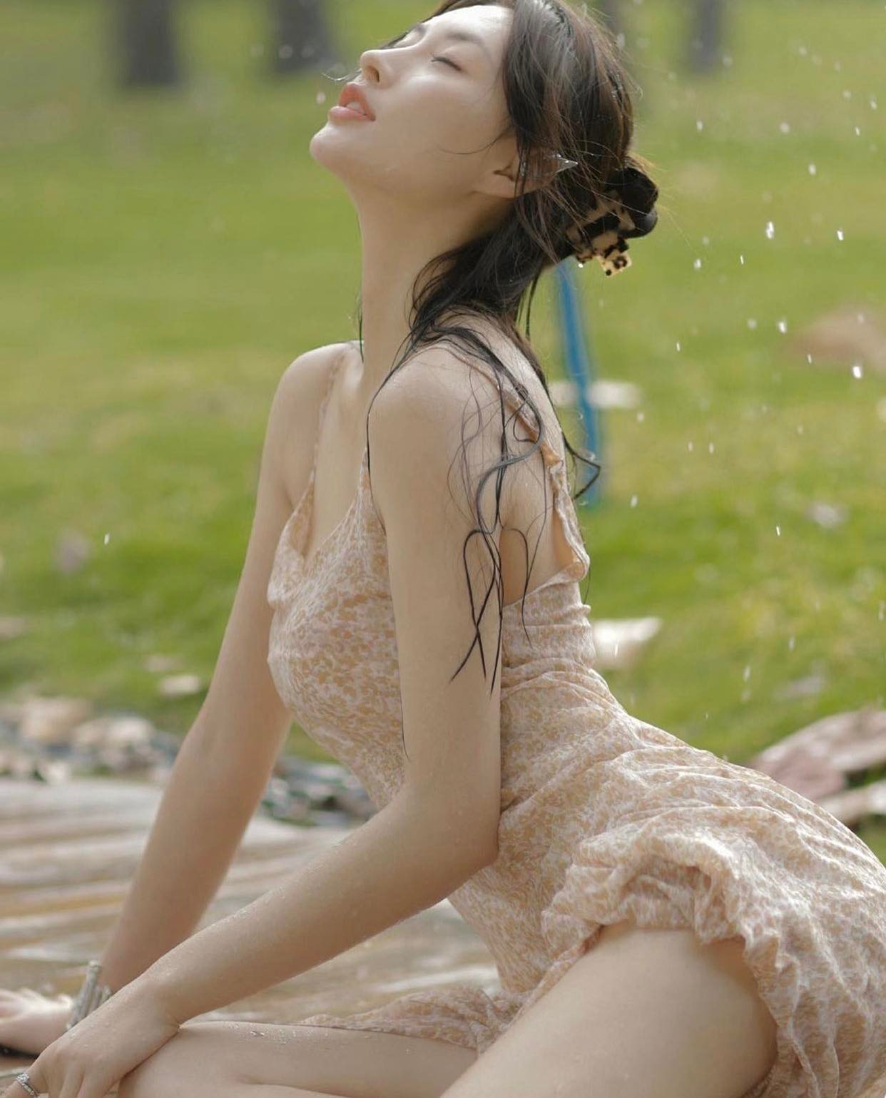 Mới đây, một người đẹp thu hút sự chú ý trên mạng xã hội trong những hình ảnh diện váy ướt nước, để lộ rõ từng đường cong cơ thể, mang đậm phong cách "Lolita". Yếu tố gợi cảm nằm ở bộ trang phục kết hợp với không gian tự nhiên, cô nàng lựa chọn váy 2 dây, có độ ôm vừa phải, dưới sự tác động của nước, tạo nên hình ảnh đối lập giữa ngây thơ và quyến rũ. Không chỉ thế, cô còn gây ấn tượng nhờ biểu cảm mơ màng, giải phóng hình thể một cách tinh tế, không gò bó.