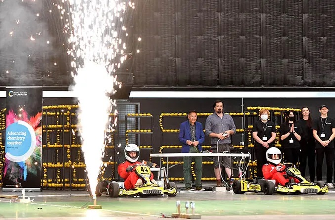 Pin được dùng để kích hoạt hệ thống pháo hoa mở màn cuộc đua xe go-kart (Ảnh: Guinness World Records)