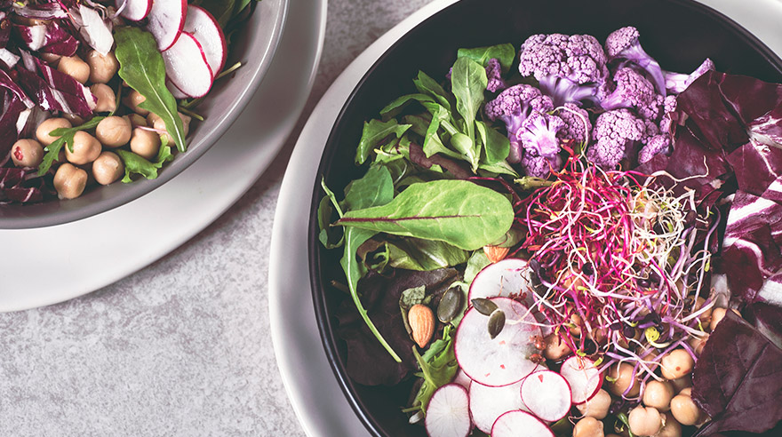 Salad with chickpeas, beets and purple broccoli