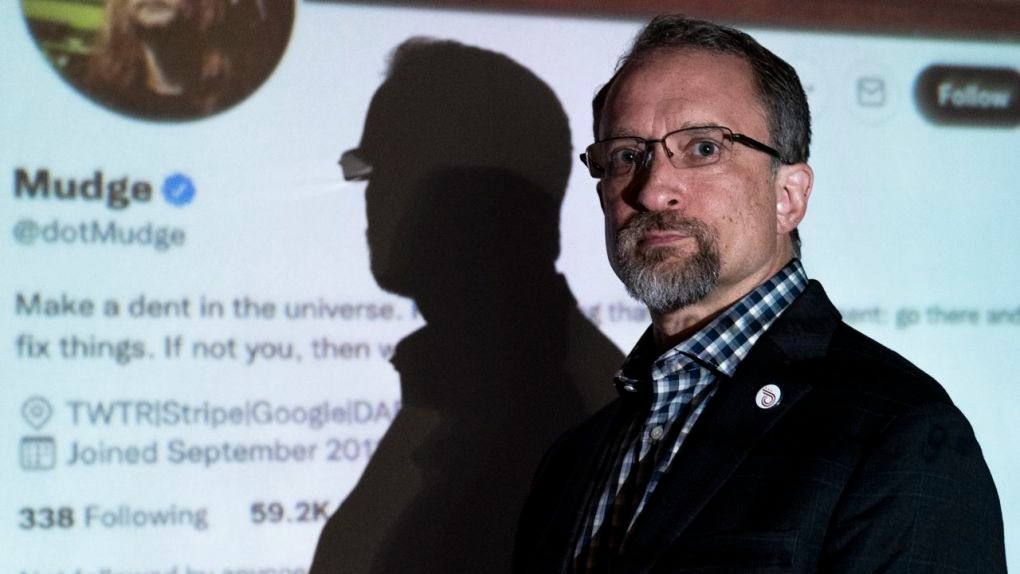 Zatko, có biệt danh Mudge, đứng trước màn hình hiển thị tài khoản Twitter của mình vào tháng 11/2020. Ảnh: CNN