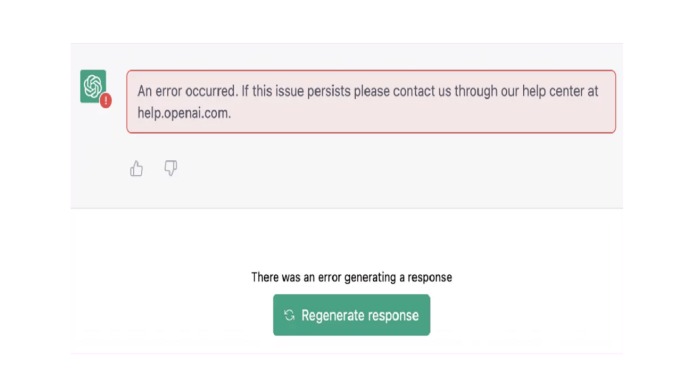 Nhiều người phản ánh khi đặt câu hỏi cho ChatGPT, chatbot hoạt động không ổn định, đưa ra phản hồi: "Đã xảy ra lỗi. Nếu sự cố này vẫn tiếp diễn, vui lòng liên hệ với chúng tôi qua trung tâm trợ giúp", đồng thời gắn liên kết trang hỗ trợ của OpenAI.