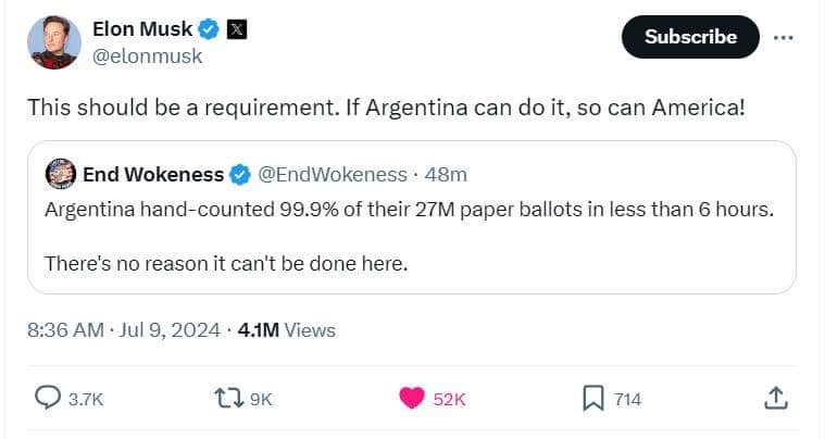 Elon Musk: Argentina làm được hông lẽ Mỹ quốc không làm nổi?