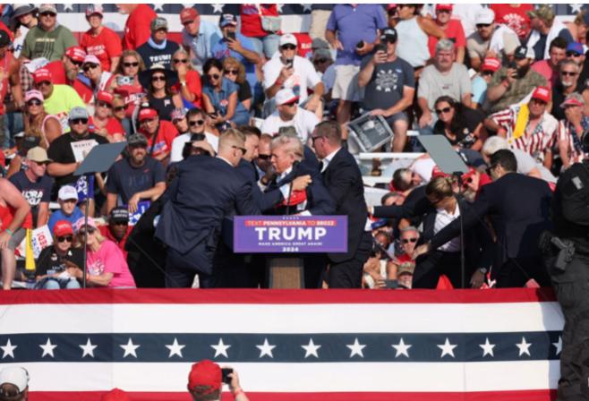Cựu Tổng thống Donald Trump được đưa khỏi cuộc vận động tranh cử sau vụ nổ súng. (Ảnh: Reuters)