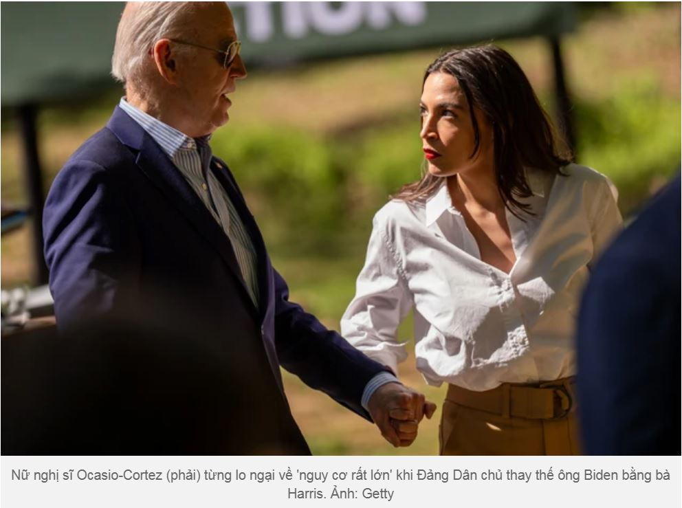 Trong các bình luận được chia sẻ trên Instagram Live chỉ vài ngày trước khi ông Biden rút lui khỏi cuộc đua vào Nhà Trắng, bà Ocasio-Cortez đã cảnh báo rằng việc thay thế ứng cử viên được cho là có thể xảy ra "nguy cơ rất lớn" đối với Đảng Dân chủ.