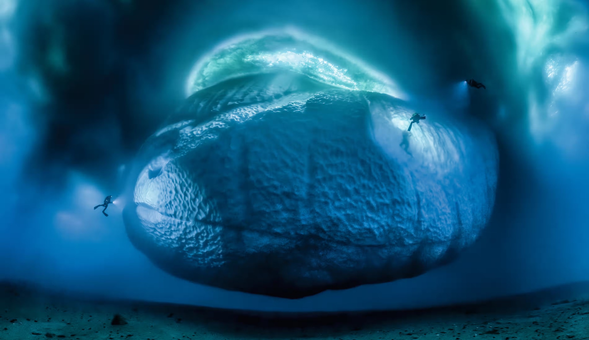 Đấy không phải là một con quái vật nào đó từ thời cổ đại đang sống dưới biển sâu. Đấy chỉ là phần chìm một khối băng nhỏ ở Nam Cực trong một bức ảnh của nhà sinh học đại dương người Pháp Laurent Ballesta, cũng là một người rất say mê chụp ảnh dưới đáy đại dương. Anh bảo, người đã truyền cảm hứng cho anh về đại dương là nhà đại dương học Jacques Yves Cousteau, còn chụp ảnh dưới nước là một đam mê lớn.