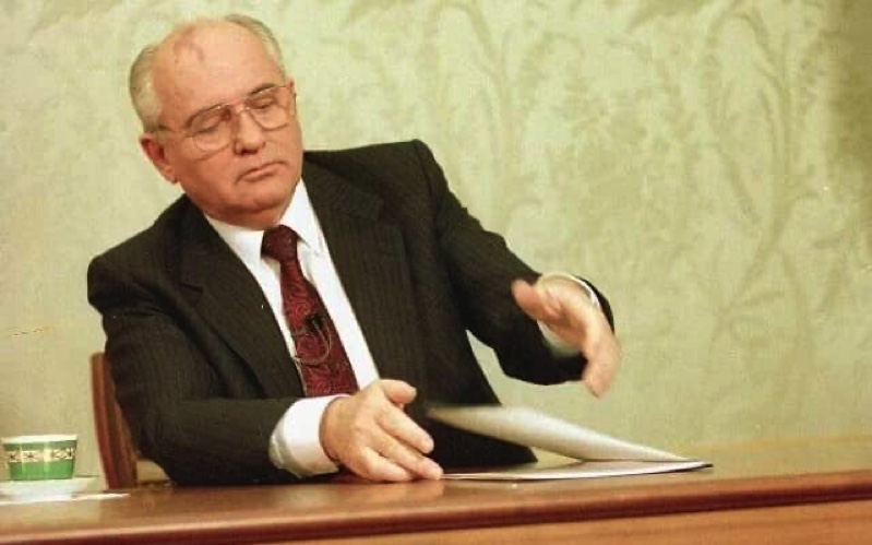 Bức h́nh lịch sử: ông Mikhail Gorbachev tuyên bố từ chức Tổng Bí Thơ và gấp lại hồ sơ. H́nh do phóng viên Liu Heung Shing (hăng thông tấn AP) chụp ngày 25/12/1991. Bức h́nh này là một phần trong bộ h́nh ảnh về sự suy tàn của đế chế Soviet được trao giải Pulitzer năm 1992.