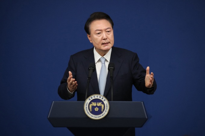 Tổng thống Hàn Quốc Yoon Suk-yeol phát biểu trong một cuộc họp báo tại Seoul hồi tháng 8/2024. Ảnh: AFP