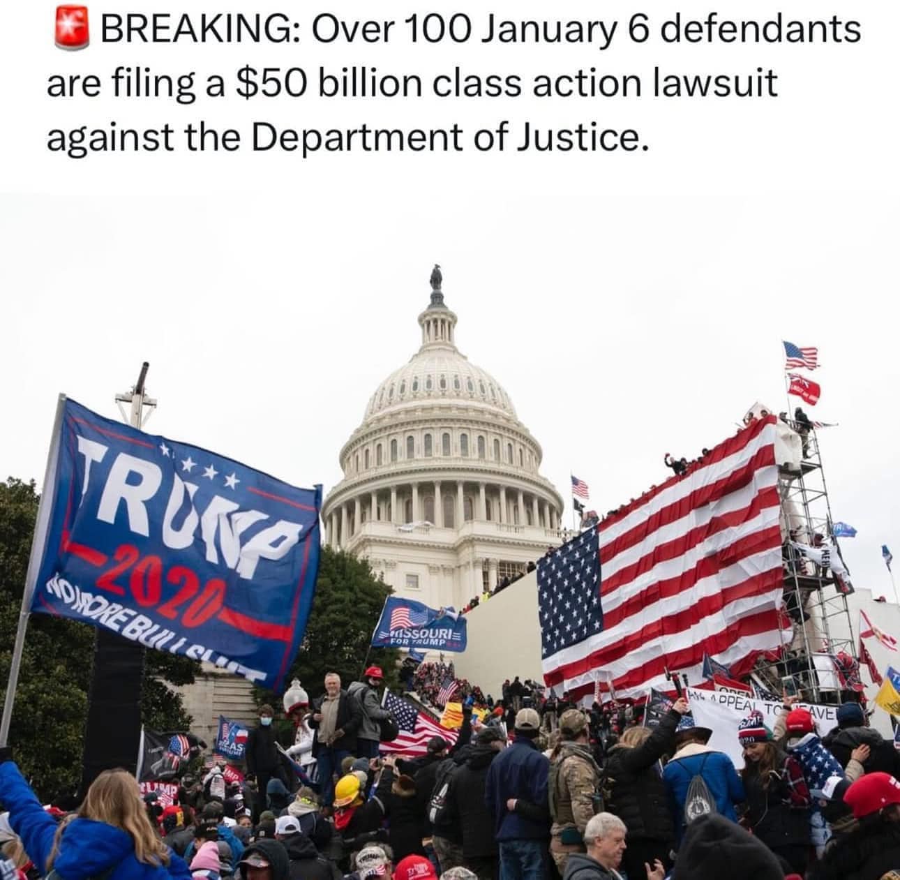 Thời gian trôi qua, nay hơn 100 bị đơn vào ngày 6 tháng 1 đang đệ đơn kiện tập thể trị giá 50 tỷ đô la chống lại Bộ Tư pháp.