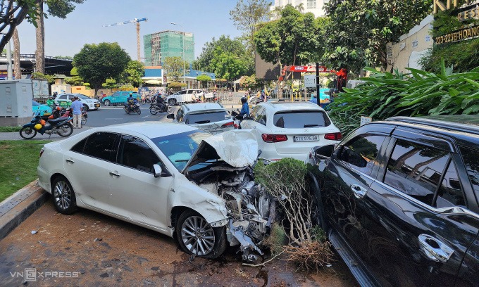 Car crashes into 13 vehicles before hitting yard of HCMC apartment building
