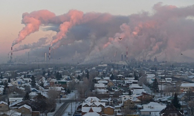 Hơi nước bốc lên từ máy lọc dầu của Gazprom Neft tại Omsk, Nga, hồi tháng 11/2022. Ảnh: Reuters
