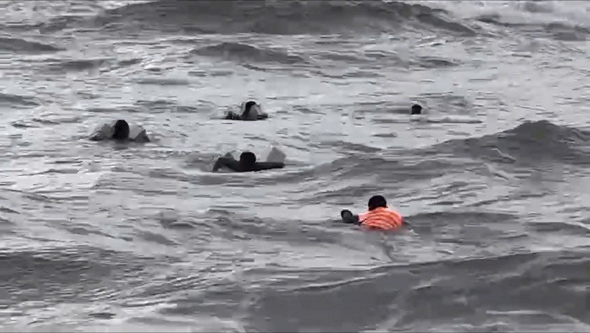 Bộ đội Biên phòng Quảng Bình cùng ngư dân cứu các thuyền viên gặp nạn. Ảnh: Bộ đội Biên phòng