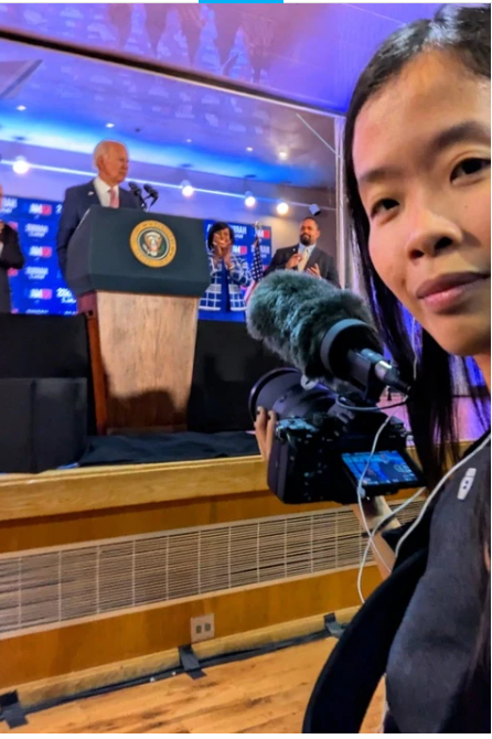 Với chuyên ngành phóng sự tài liệu, việc Minh Nguyệt đến với đoàn tranh cử tổng thống Mỹ của ông Joe Biden rất tình cờ.