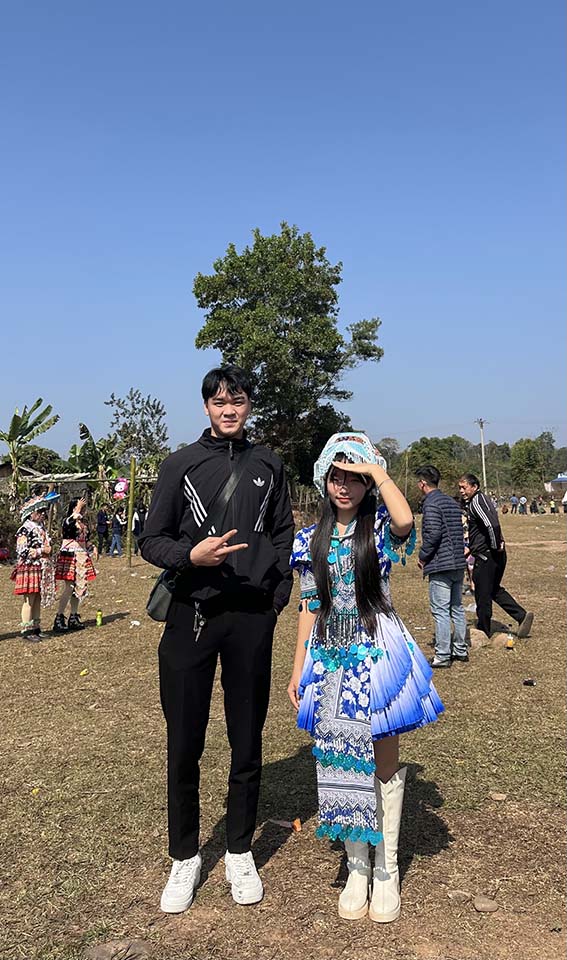 Ngày hôm sau, chàng trai sinh năm 2002 tiếp tục đặt chân đến huyện Mường Nhé của tỉnh Điện Biên, ghé vào chợ tình và tham gia lễ hội cùng người Mông với các trò chơi như ném pao, tu lu, đi cà kheo.