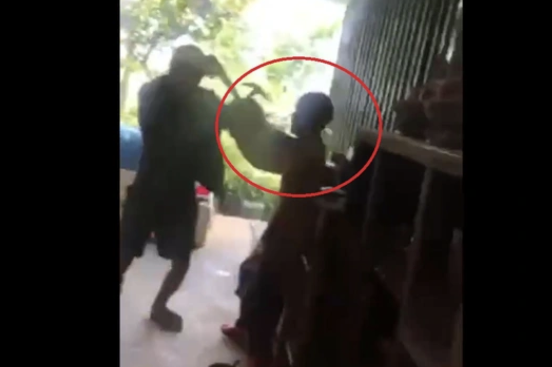 Hình ảnh người nghi là nhà sư dùng búa tấn công người khác.