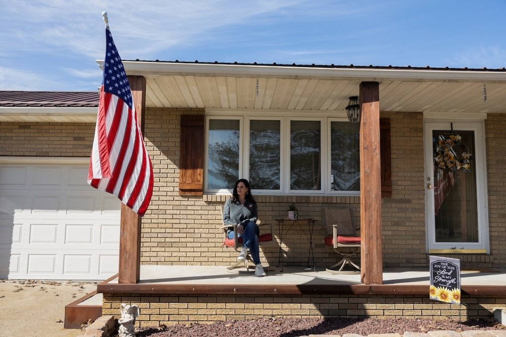 Jennifer Piggott ngồi trước hiên nhà ở thành phố Parkersburg, Tây Virginia, ngày 28/2. Ảnh: Reuters