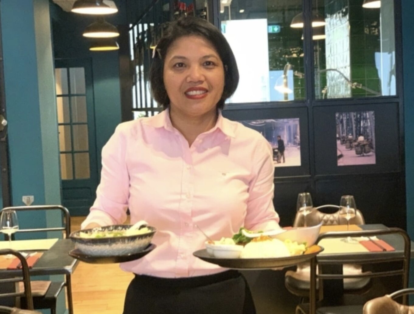 Chị Hồng Hải ở nhà hàng thuộc TP Brussels, Bỉ. Ảnh: Nhân vật cung cấp