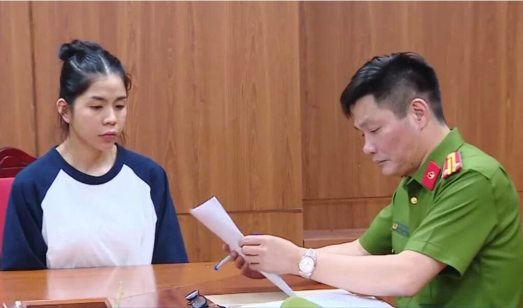 Hằng Du mục tại cơ quan công an. Ảnh: ANTV