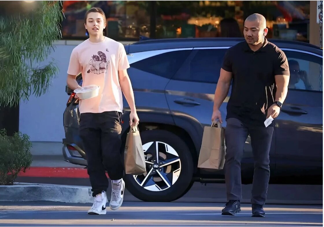 Knox Jolie Pitt, cậu con út của Angelina Jolie và Brad Pitt luôn được giới truyền thông săn đón mỗi khi xuất hiện nơi công cộng. Mới đây, chàng trai 16 tuổi gây chú ý với phong cách ăn mặc trẻ trung, cùng vệ sĩ tới mua đồ ăn trưa tại một cửa hàng ở Los Angeles. Ảnh: Backgrid.
