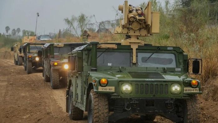 Xe bọc thép của quân đội Mỹ gần biên giới Mexico. Ảnh: X/@GregAbbott_TX