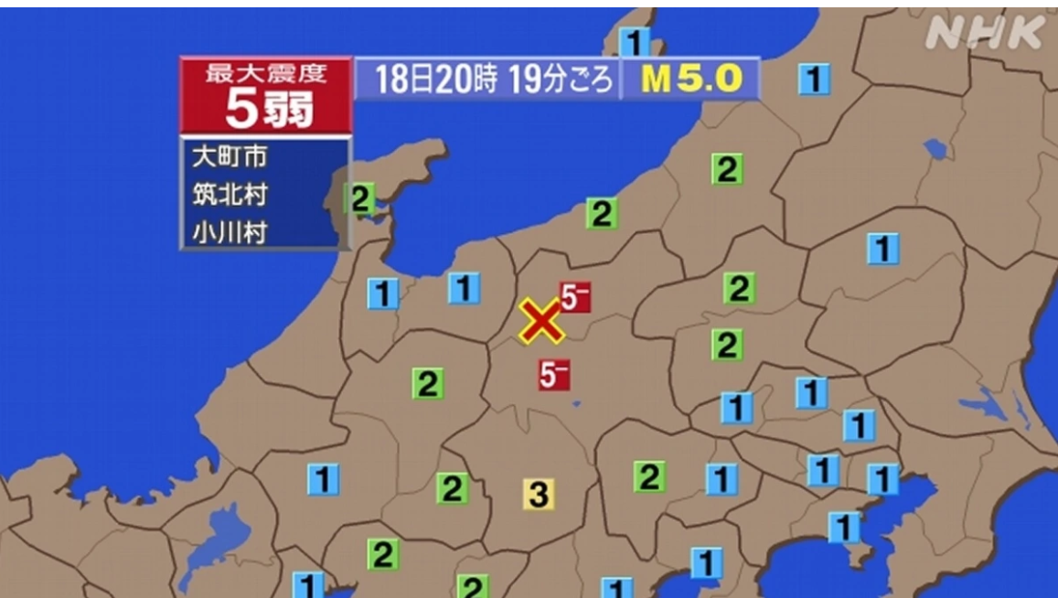 Theo Cơ quan khí tượng thủy văn Nhật Bản, tâm chấn của trận động đất này ở phía bắc tỉnh Nagano, miền Trung Nhật Bản, cách thủ đô Tokyo khoảng 225km. Độ sâu của tâm chấn là khoảng 10km, với chấn động đo được tại khu vực trung tâm lên tới 5,0 độ.