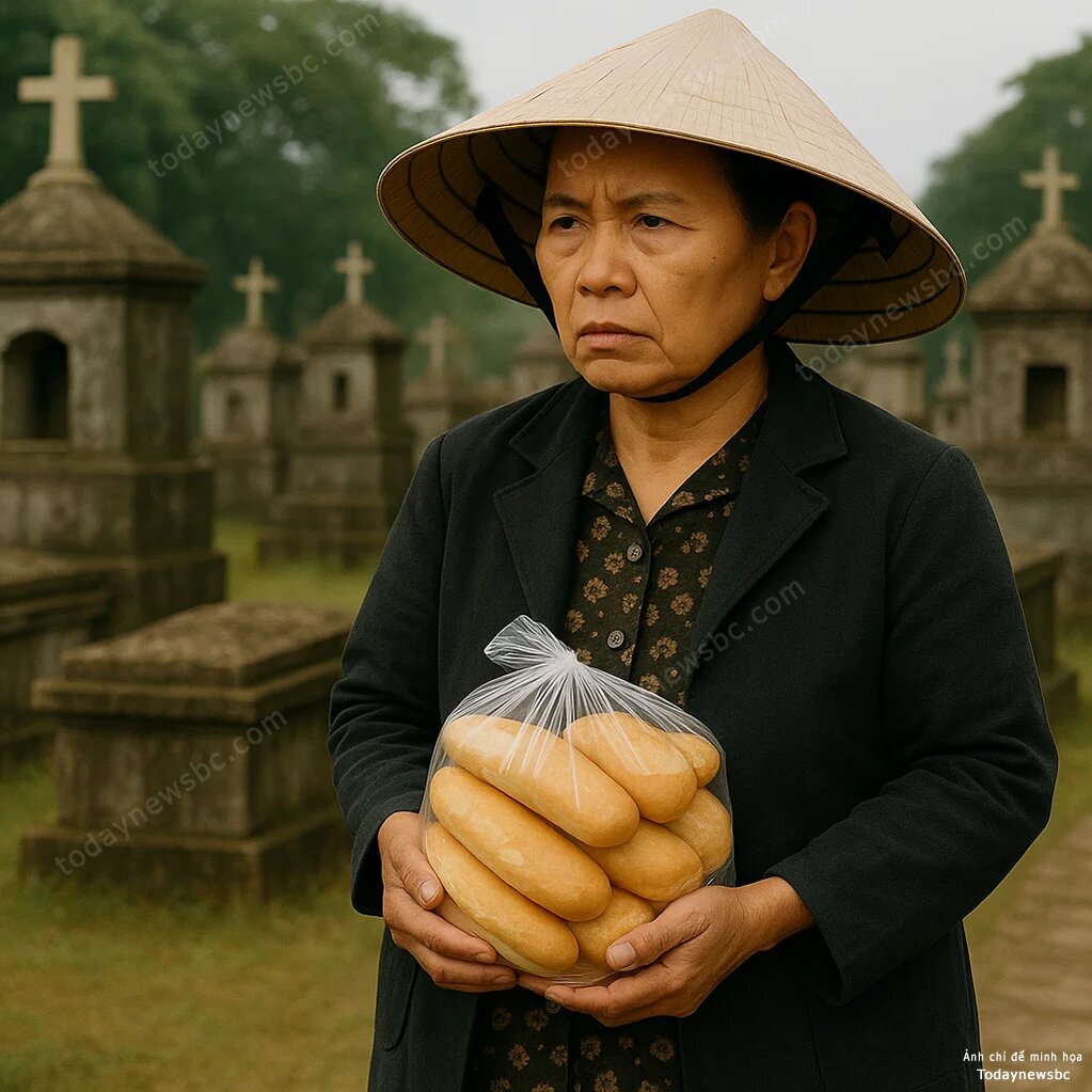 Và từ hôm đó, ngày nào bà cũng đem đúng mười ổ bánh mì lên, đặt ngay ngắn trước mộ chồng. Không ai biết rằng năm ổ cho ông, năm ổ cho Hòa – người con trai mà bà chưa từng sinh ra, nhưng lại thương như máu mủ.