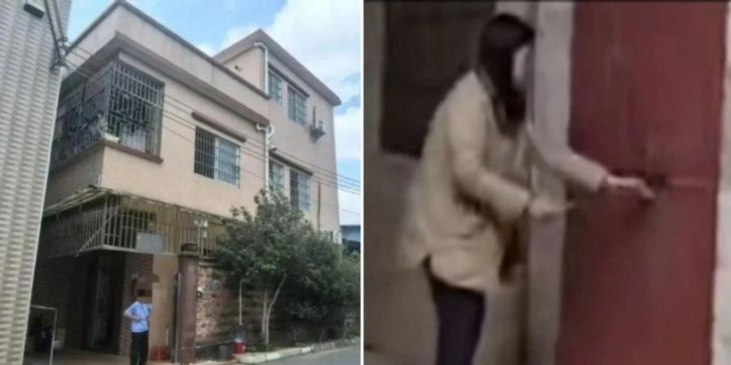 Nghi ngờ vợ mới của bố có mưu đồ, con gái cụ Biao dùng búa phá khóa cửa nhà cha mình. Ảnh: 163.