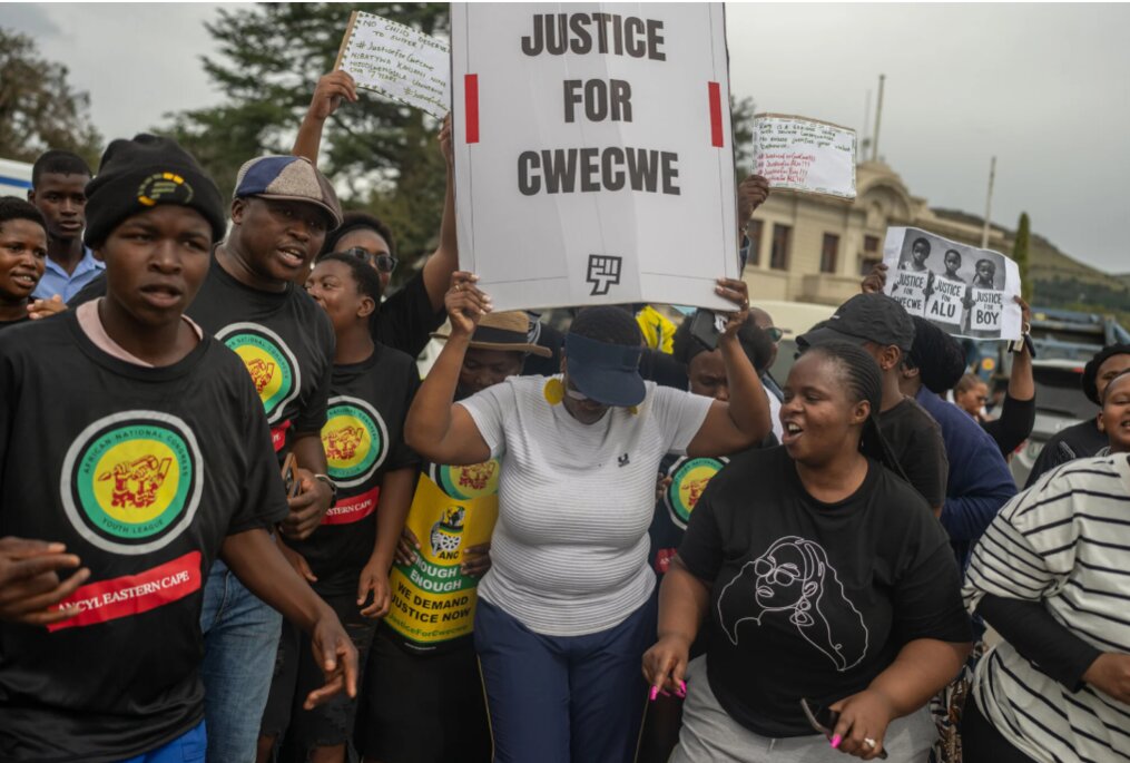 Các cuộc biểu tình đòi công lý cho Cwecwe lên đến đỉnh điểm vào tháng 3 khi hàng nghìn người tuần hành đến văn phòng của Tổng thống Cyril Ramaphosa để nộp bản kiến nghị yêu cầu ông tuyên bố bạo lực tình dục là thảm họa quốc gia ở Nam Phi.