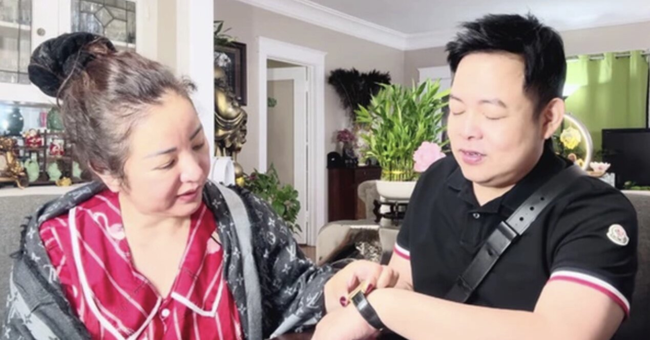Tiếp đó, Quang Lê còn khoe với Thúy Nga chiếc đồng hồ hàng hiệu mình đang đeo trên tay. Anh nói: "Đồng hồ này nặng lắm vì làm bằng vàng khối. Tổng số vàng làm ra chiếc đồng hồ này là một cây.