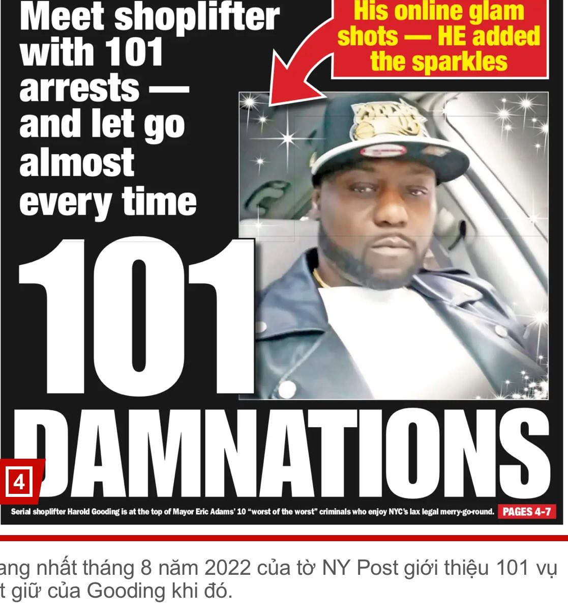 Harold Gooding xuất hiện trên trang nhất của tờ The Post vào tháng 8 năm 2022 với tư cách là người đứng đầu danh sách "Tồi tệ nhất trong những kẻ tồi tệ nhất" của Sở Cảnh sát New York và hắn ta chỉ bị bắt 101 lần vào thời điểm đó.