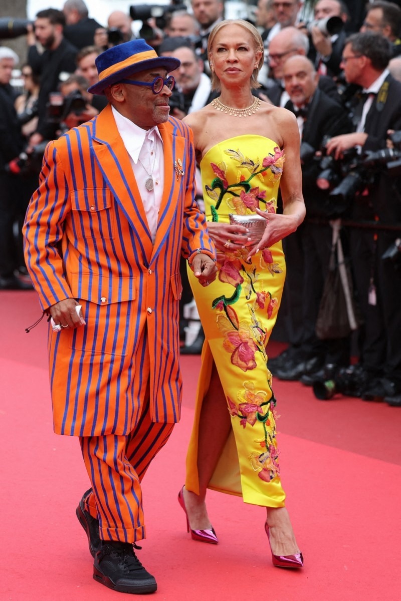 Vợ chồng đạo diễn Spike Lee và Tonya Lewis chọn trang phục nhiều màu sắc tươi sáng với tông nóng chủ đạo.