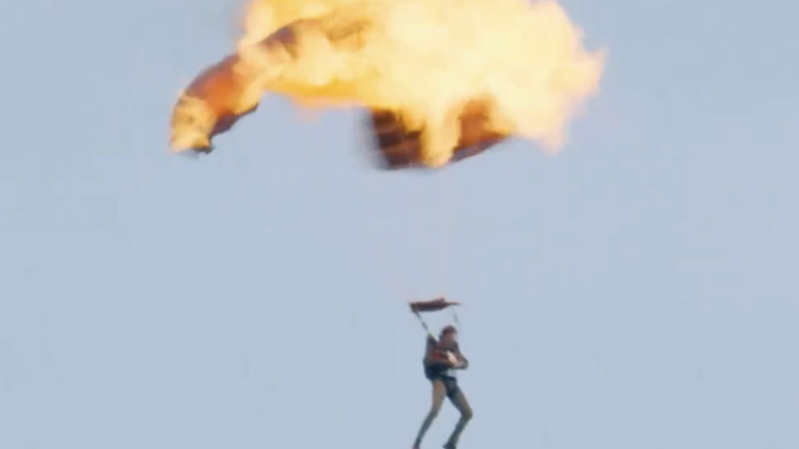 Ngôi sao này đã nhảy ra khỏi trực thăng 16 lần trong khi được buộc chặt vào một chiếc dù đã được tẩm nhiên liệu và bốc cháy, trước khi cắt bỏ phần cháy xém còn lại của chiếc dù đầu tiên và triển khai an toàn một chiếc dù dự phòng. Không có diễn viên hay diễn viên đóng thế nào khác có thể thực hiện được số lần rơi xuống bất chấp tử thần như vậy, và sự cống hiến của anh đã được đền đáp bằng danh hiệu kỷ lục vào ngày 4 tháng 6.
