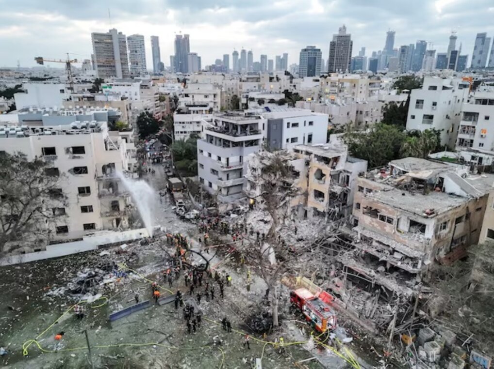 Khung cảnh đổ nát sau cuộc tấn công bằng tên lửa của Iran vào Israel ngày 16/6. Ảnh: Reuters