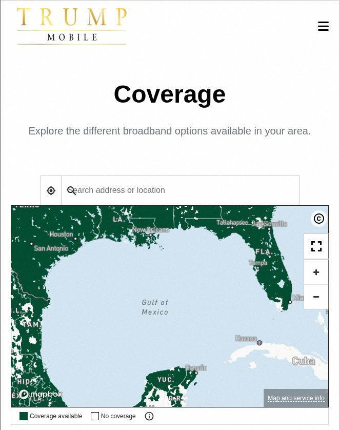 Theo Wired, bản đồ phủ sóng ban đầu do Trump Mobile chia sẻ giống với bản đồ được Ultra Mobile, một nhà mạng di động ảo thuộc sở hữu của T-Mobile sử dụng.