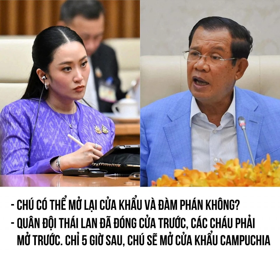 Trong cuộc điện đàm giữa Chủ tịch Thượng viện Hun Sen của Campuchia và Thủ tướng Thái Lan Paetongtarn Shinawatra hôm 15/6 (và được tung lên mạng hôm 18/6), hai người đã xưng hô rất thân mật.