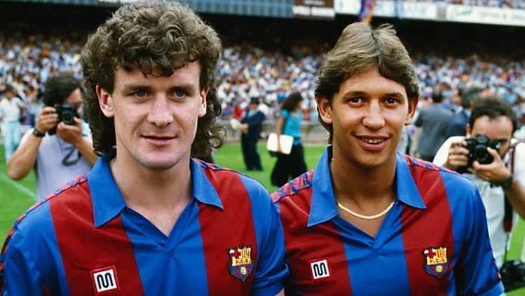 Mark Hughes (trái) và Gary Lineker khi ra mắt Barca, dưới thời HLV Terry Venables năm 1986.