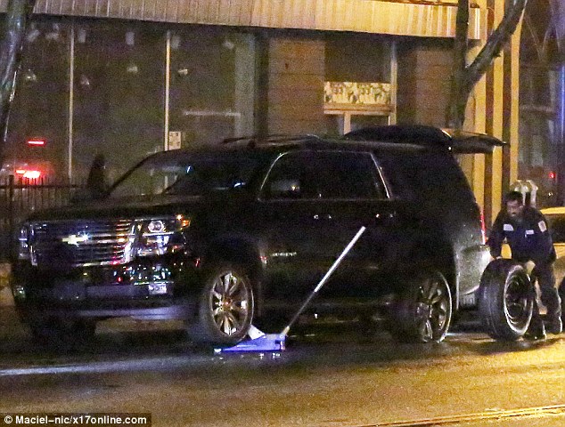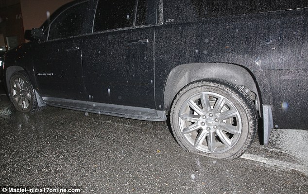 Vì trời mưa, chiếc Chevrolet Suburban đồ sộ đã bị trượt bánh trên đường phố Beverly Hills thuộc bang California, Mỹ. Hậu quả là chiếc SUV cỡ lớn đã đâm vào cột bên đường và bị nổ hai lốp trái.