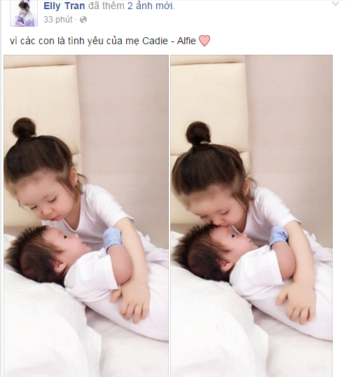Đặc biệt, con gái đầu lòng mang tên Cadie Mộc Trà của Elly nhanh chóng trở thành “cơn sốt”, “đốn tim” cộng đồng mạng bởi vẻ đẹp trong sáng, dễ thương với đôi mắt to tròn, khuôn mặt baby hết sức đáng yêu. Gần đây, Elly tiếp tục khiến dư luận hoang mang khi đăng tải hình ảnh Cadie cùng một bé trai có tên Alfie. Nhiều người đoán già đoán non Alfie chính là em ruột của Cadie, dù Elly chưa từng công khai xác nhận.